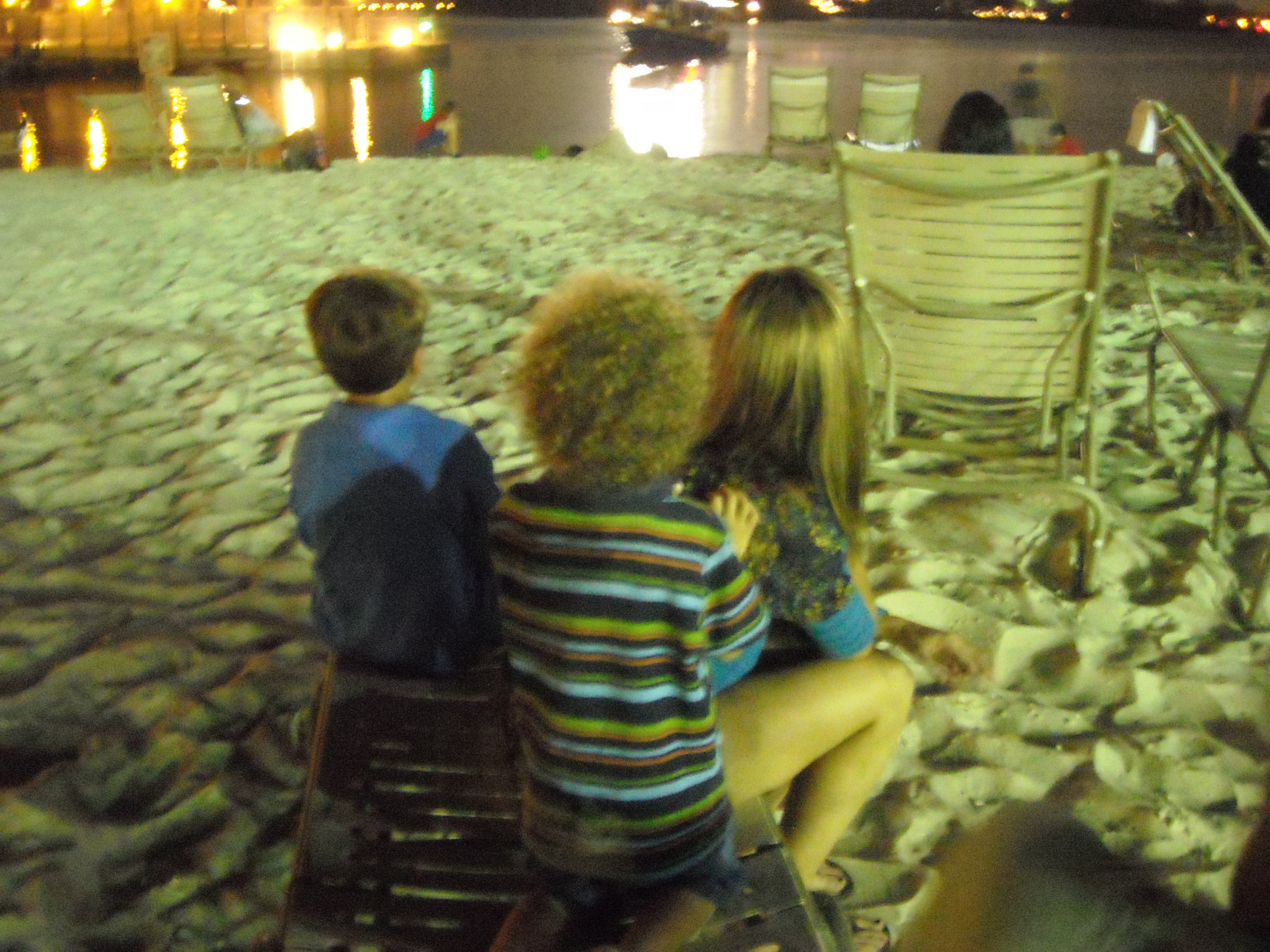 One of the free perks was a shuttle bus to Disney, so Saturday night we rode to the Magic Kingdom where we caught the monorail to the Polynesian Hotel and enjoyed an inexpensive dinner at Capt. Cooks, then headed out to the lakefront where Peter Pan was being shown on a big screen. At 8 p.m. the fireworks started which were enjoyed by all, especially the big kids, while sipping a fruity glass of sangria. The boys had a great time; the weather was perfect, sitting on the beach with a full moon felt so relaxing after a frenetic day with three wild and crazy kids. We then took a boat to the Magic Kingdom where we caught the riverboat to the transportation center, and then the shuttle back to the hotel. Taking advantage of free stuff at Disney is always a favorite.