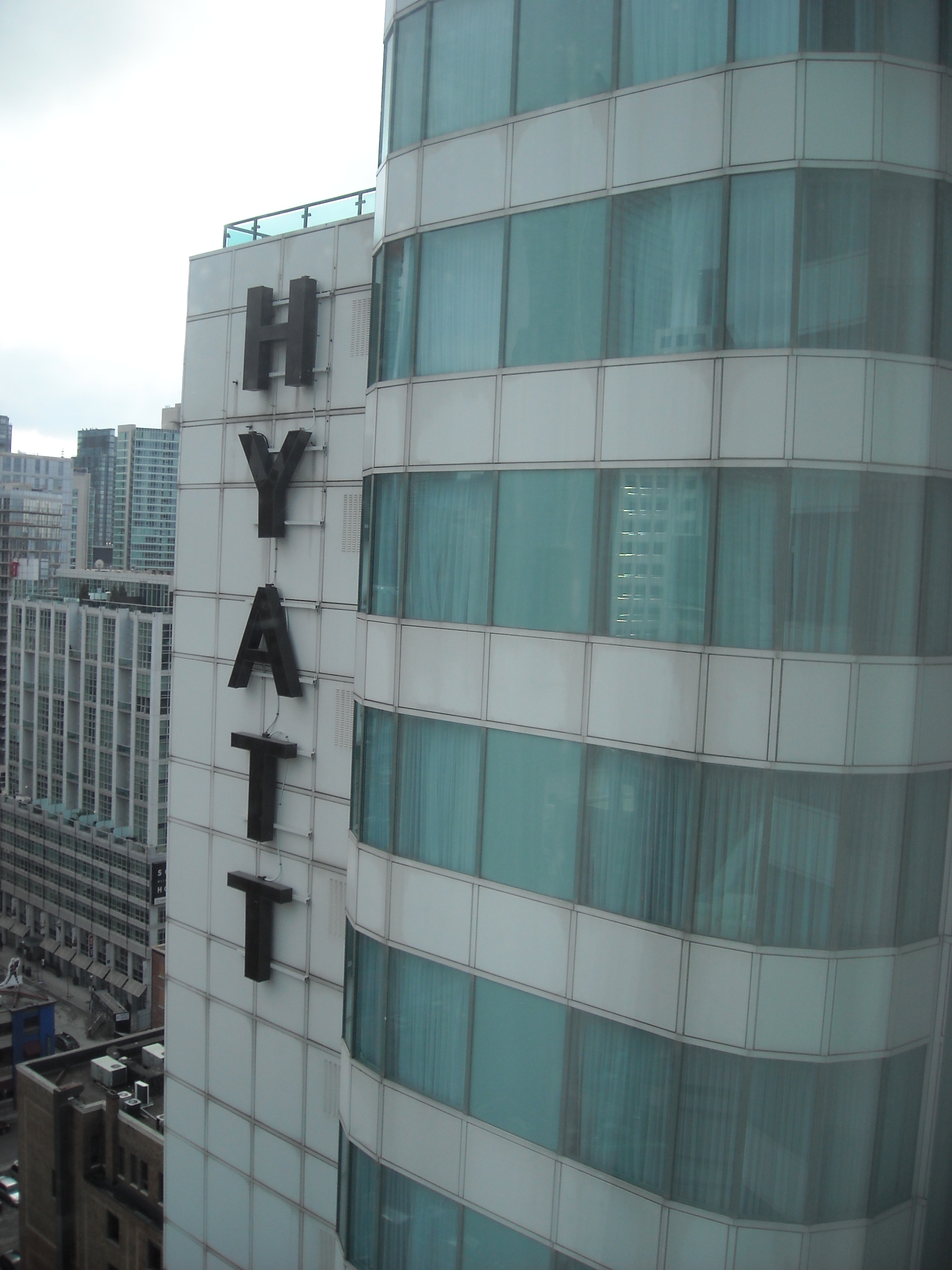 The train ride took us through some seedy areas, which was a surprise as we were accustomed to the rails of Europe traveling through gorgeous countryside and beautiful neighborhoods. Arriving in Union Station we opted to walk fifteen minutes to the Hyatt Regency while struggling with a suitcase whose wheels have seen better days. Time to shop for new luggage! Check-in at the Hyatt was quick. I read somewhere to ask for a room facing the CN Tower and we were instantly upgraded (even though we had booked through Priceline) to a room with a view on the 17th floor. The only complaint here, once again, was the lack of WiFi. I’ll never understand why an upscale, 4-star hotel will charge $15 a day to go online. Of course, we could opt to use our laptop and Kindle in the lobby for free access, but what a pain in the rear that is! Not to mention it didn’t work half the time and we were forced to go to the adjacent Starbucks for coverage. Other than that inconvenience, our stay was just fine and the location was perfect with many restaurant choices within two blocks.