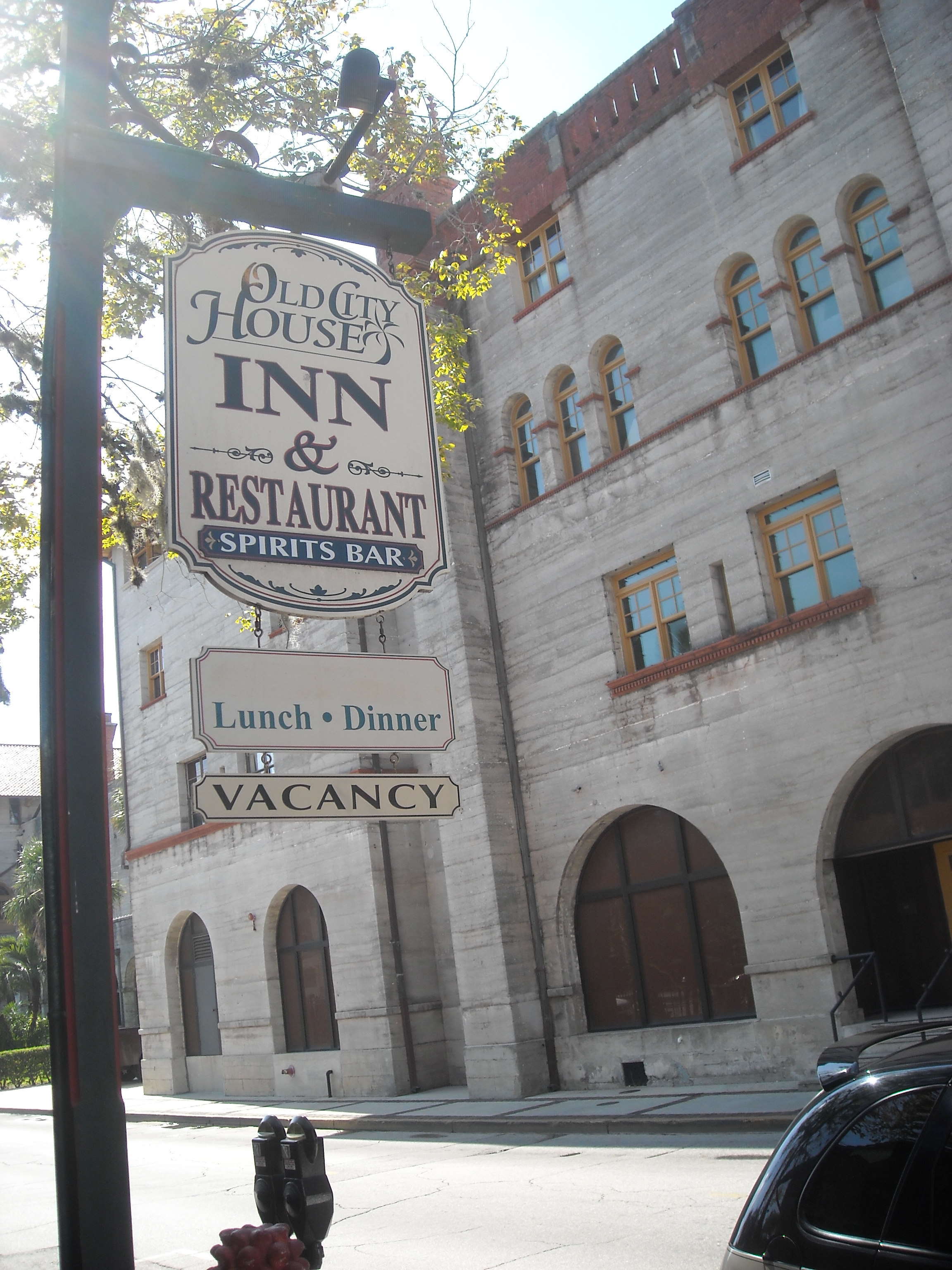 Recently, however, we were given the opportunity to visit St. Augustine without children along for the ride, rediscovering a city full of culinary and cultural surprises. Our newfound experience of this historical town created a feeling of European ambience with narrow brick lanes leading to our lodging of choice, the St. Francis Inn, on St. George Street. Here we were welcomed to an inviting suite complete with complimentary sherry, to be sipped on the wrap-around porch in rocking chairs, surrounded by lush, native Florida landscaping. Our hosts, Joe and Margaret Finnegan, provided an atmosphere of warmth and hospitality, while enlightening us on the Inn’s historical past. After each day of exploring the city, we enjoyed a relaxing time in the courtyard with a selection of evening wines and desserts along with ghostly tales from our hosts.