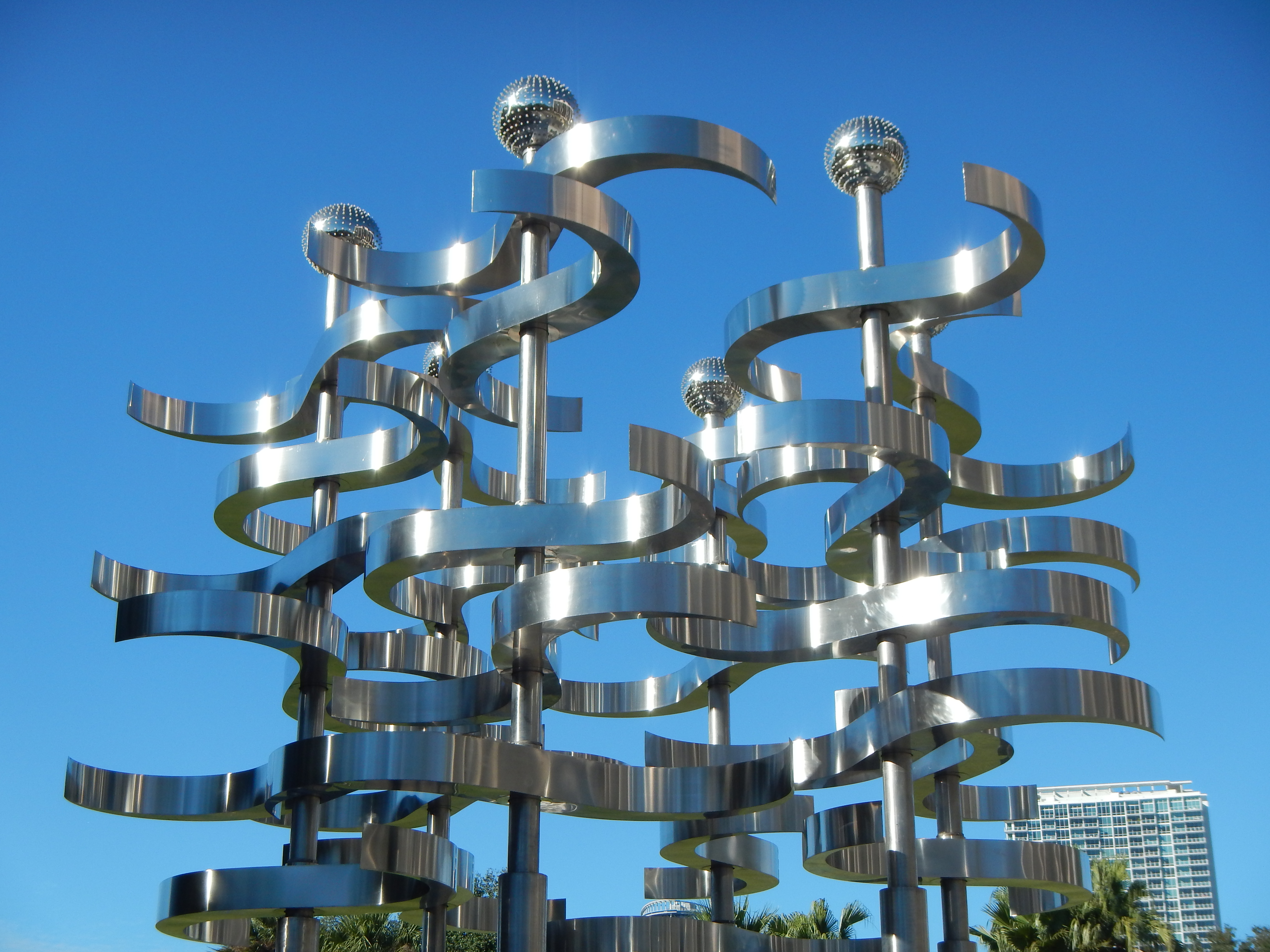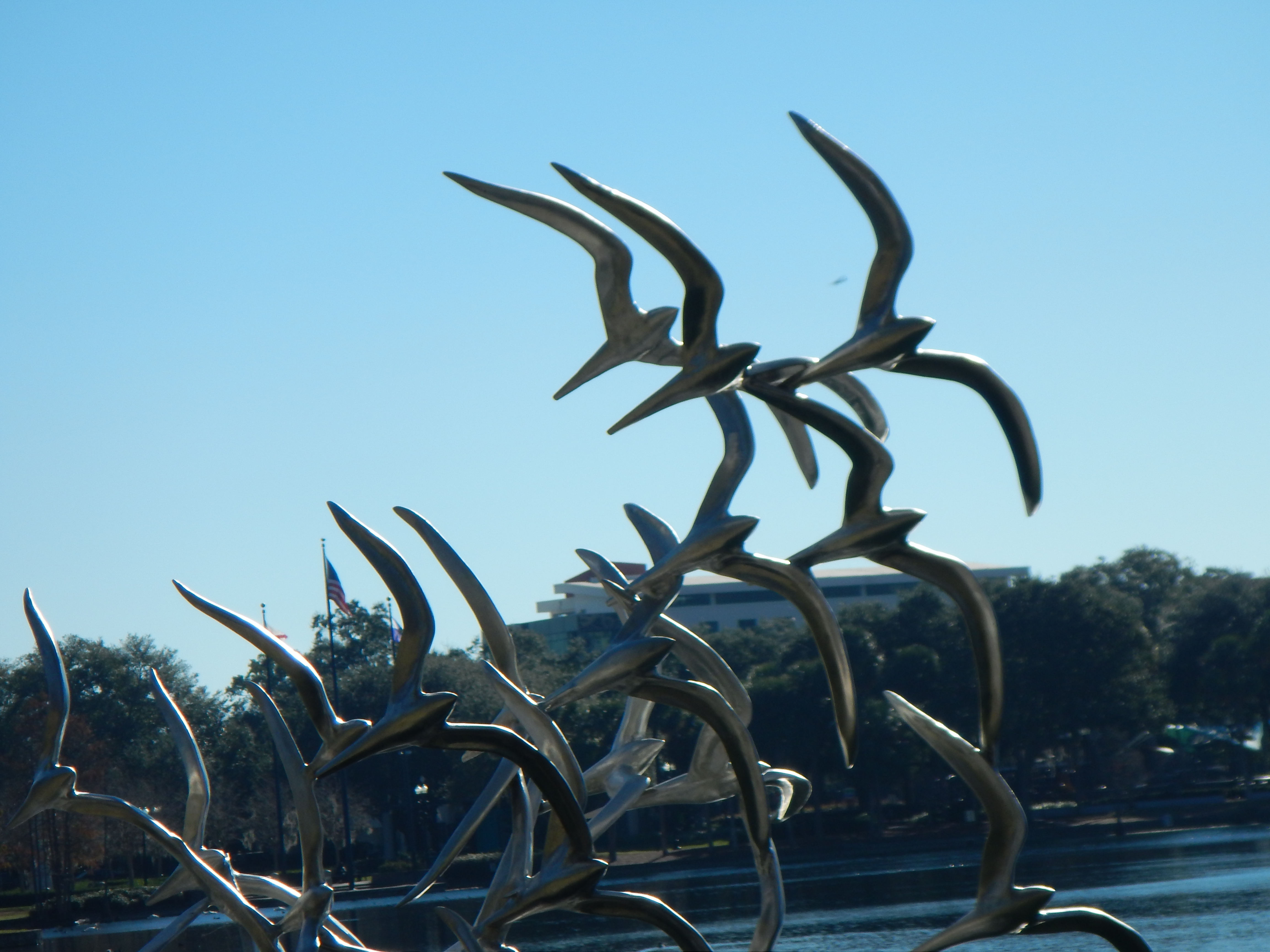 The artist Ralfonso created “Union”, on the northeast corner of Lake Eola. He describes the sculpture as “wind-driven kinetic stainless steel/aluminum sculpture” with multiple “wings” moving with the breeze. A fellow admirer of this piece told me that he imagines the spirits of deceased loved ones causing the parts to move.