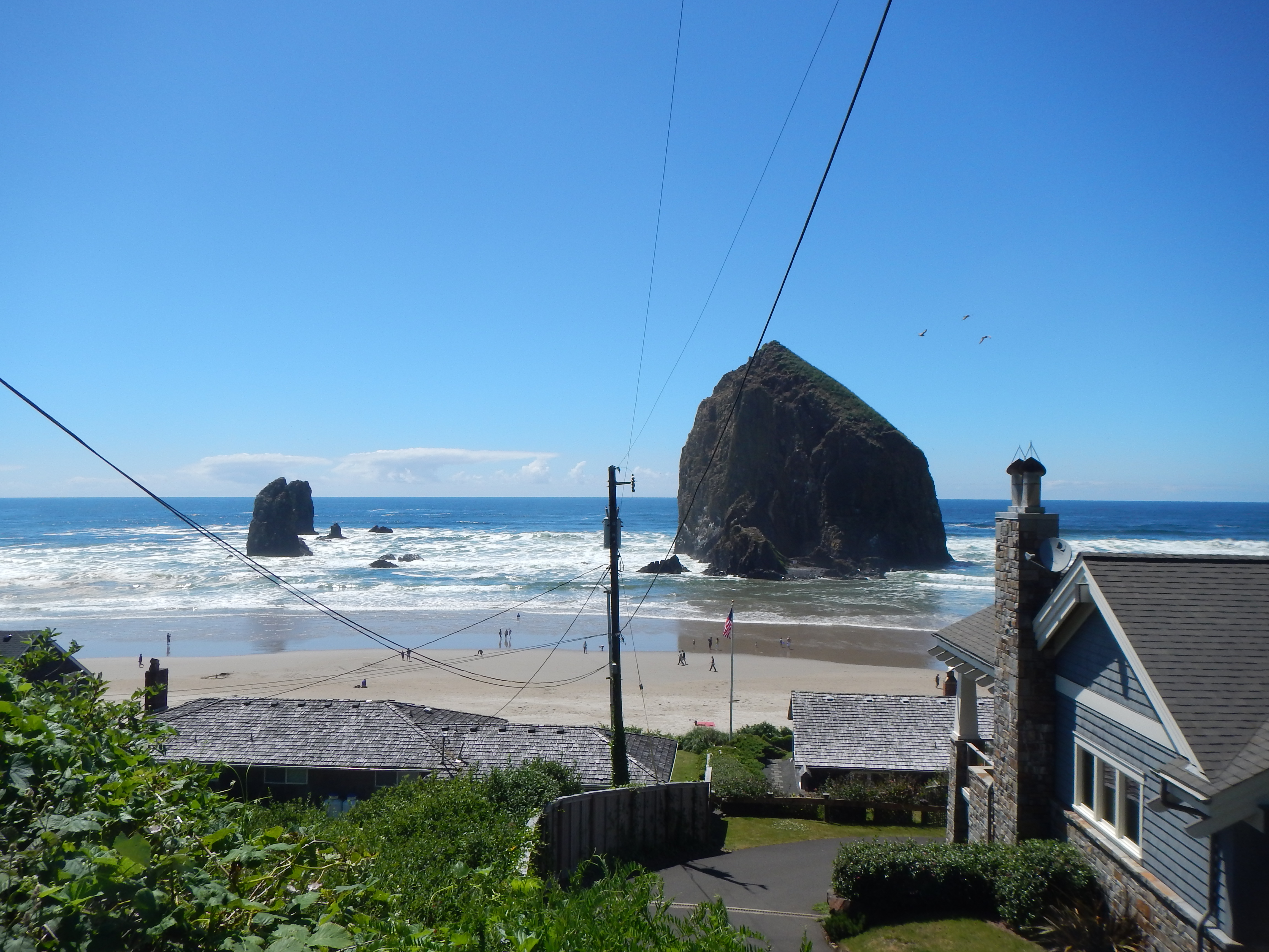 Finally, getting to Chapter 2 of our summer trip out West…we left Washington DC before dawn, heading to Portland, Oregon, to meet up with an old grammar and high school classmate, Bob Burgan. Bob and Mary extended an invitation to stay with them a couple of nights at their beach house in Manzanita. I haven’t seen Bob since high school but have reconnected through FaceBook and have been intrigued by his photos of Manzanita, which is just south of Cannon Beach. It’s a 90 minute drive from Bob and Mary’s lovely house in downtown Portland, west to the coast. When you reach the westernmost point and head south to Manzanita, the view of the ocean is phenomenal…it most definitely qualifies as a “Holy shit!” moment.