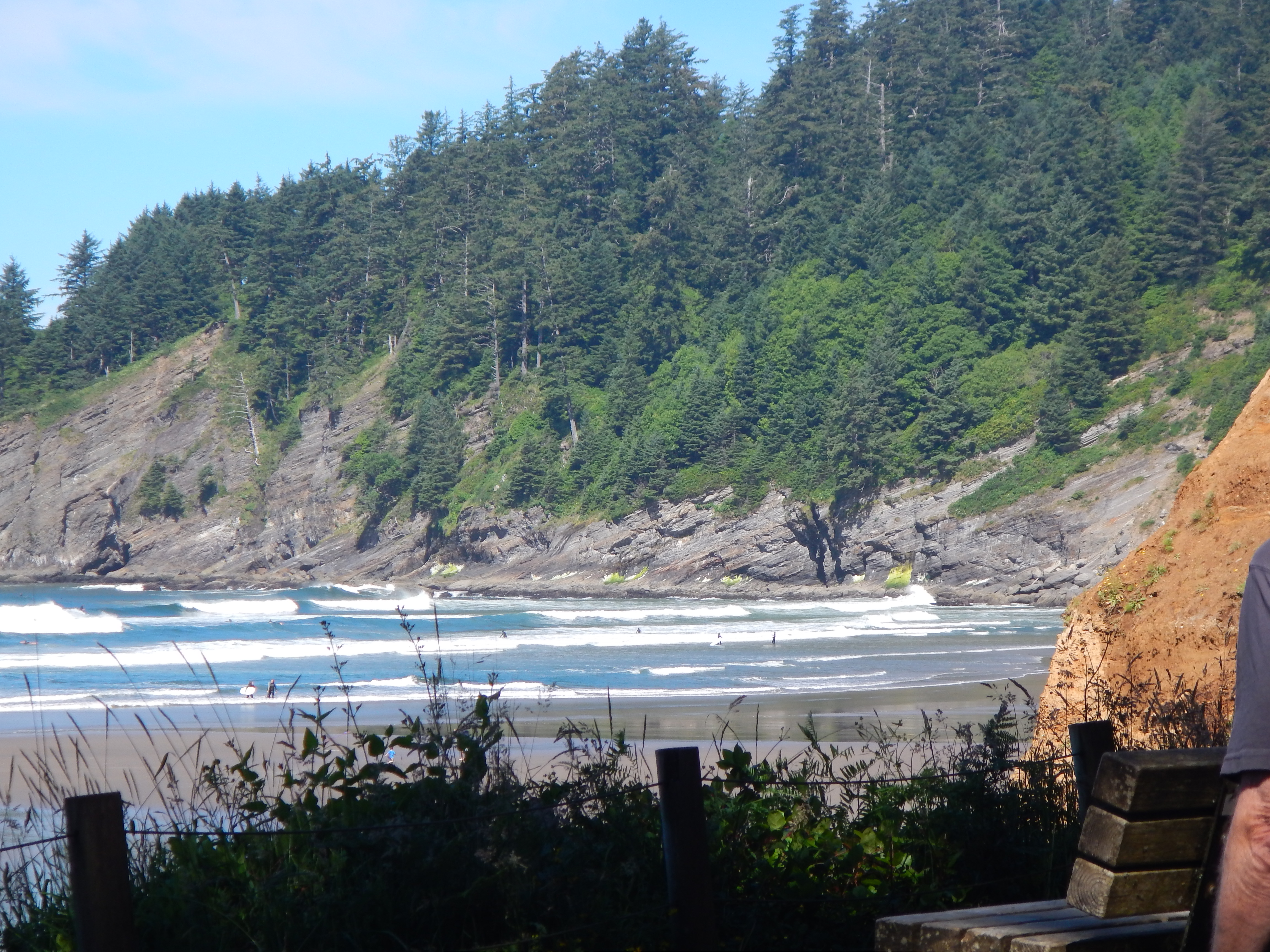 Bob and Mary’s pup, Nola, loves the beach and was in constant motion. The next day Bob took us on a short hike from the Oregon Coast Highway to Oswald West State Park, another beach with magnificent views, this time with surfers taking to the waves. Unlike Florida beaches, the water is so cold the surfers have to be covered head to toe before making their way into the frigid water. Tsunami warnings and evacuation route signs dot the roadway. An issue we, on the east coast, don’t think twice about.