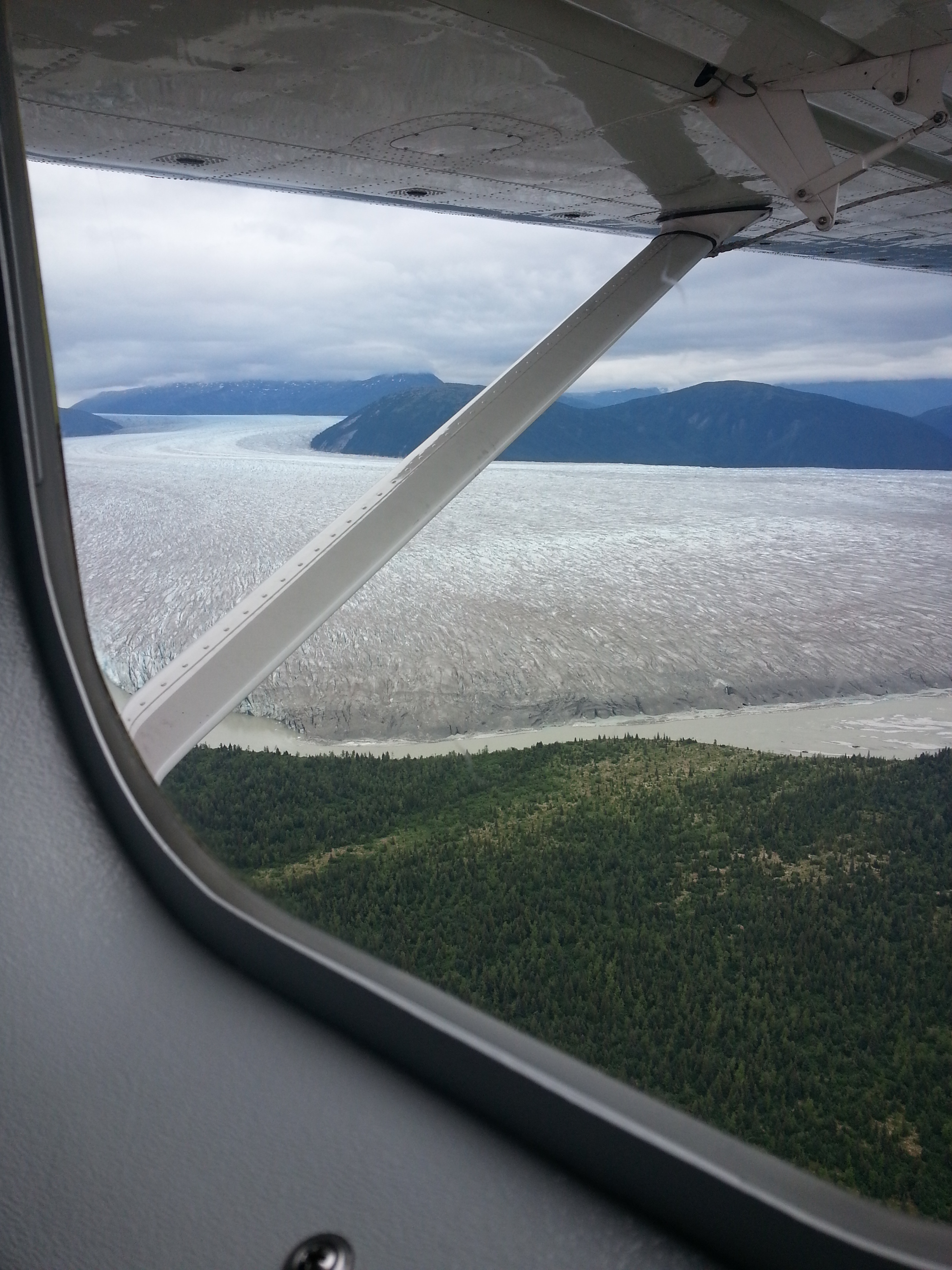 We bravely, but with a fair amount of trepidation, chose a Wings Airways seaplane (or floatplane, as they’re called in Alaska) touring five of the glaciers of Juneau’s massive icefield. Strapping into the 10 passenger De Havilland Otter was scary, to say the least, especially on such a cloudy day but we just sucked it up, donned our headphones and held our breath.